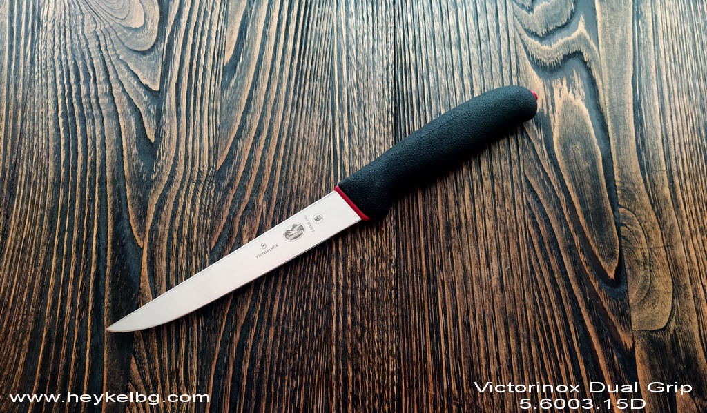 Месарски нож с двойно модифицирана дръжка от каучук с грапава микроструктура. Подходящ за работа във влажна среда. Острието е направено от хром-молибденова неръждаема стомана.
